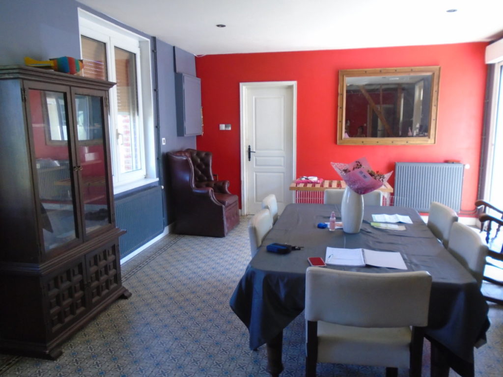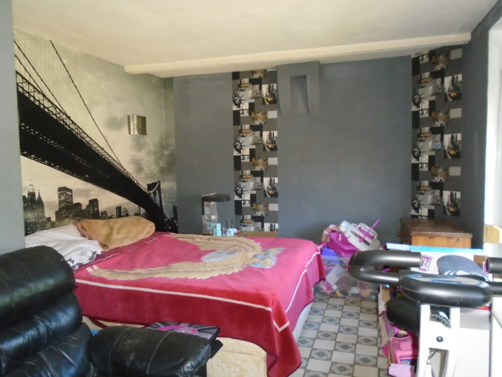 Double room with lovely tiled floors, sliding patio doors to rear, windows, front entrance, radiators, fireplace.