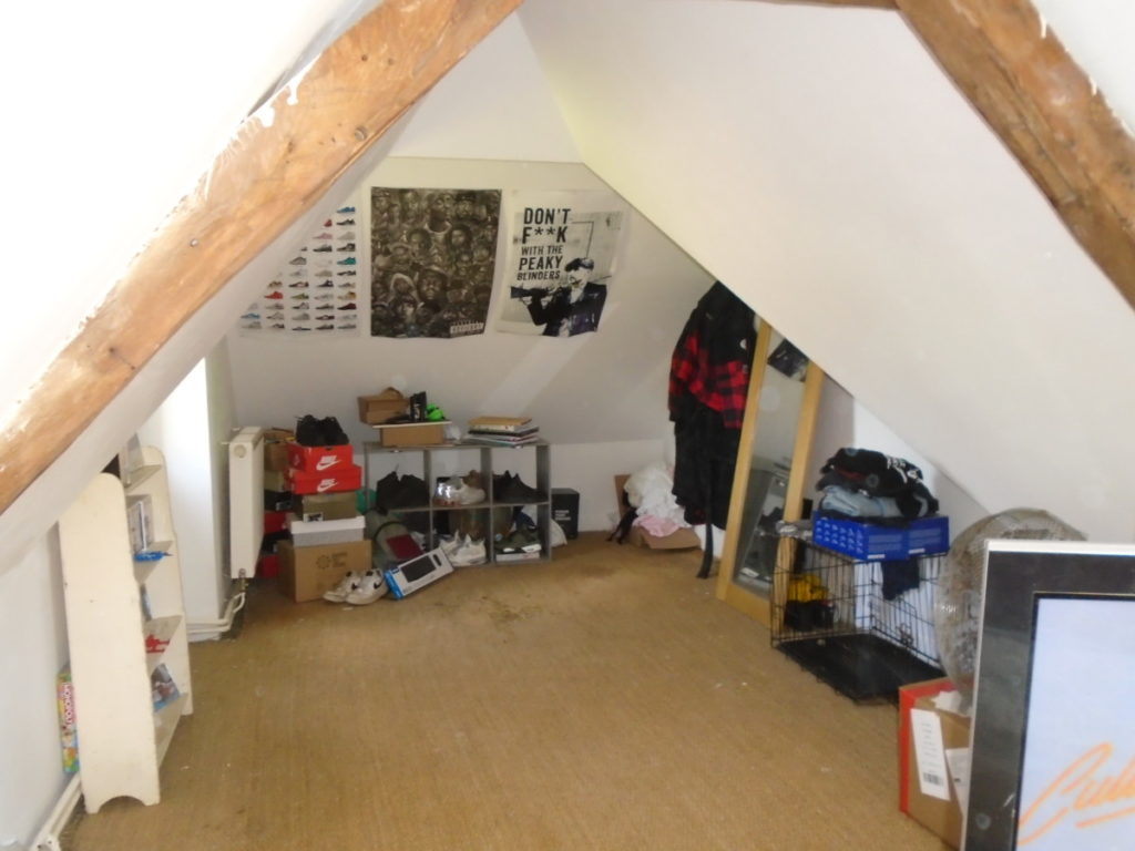Floorboards, window, beams, radiator.