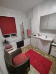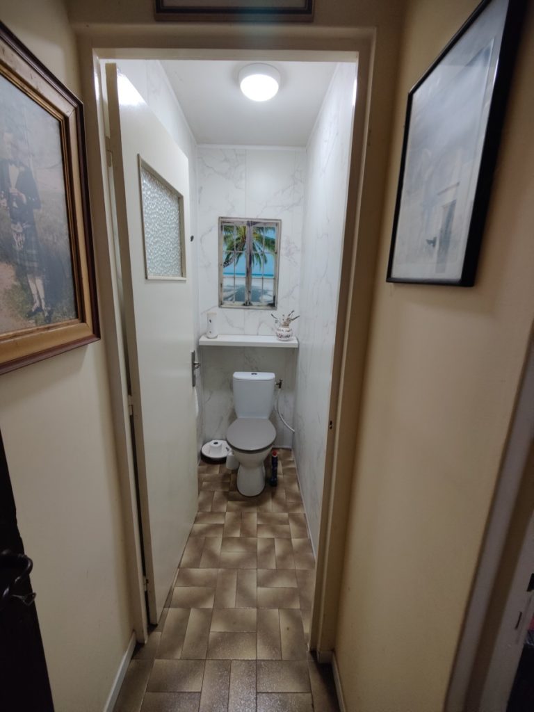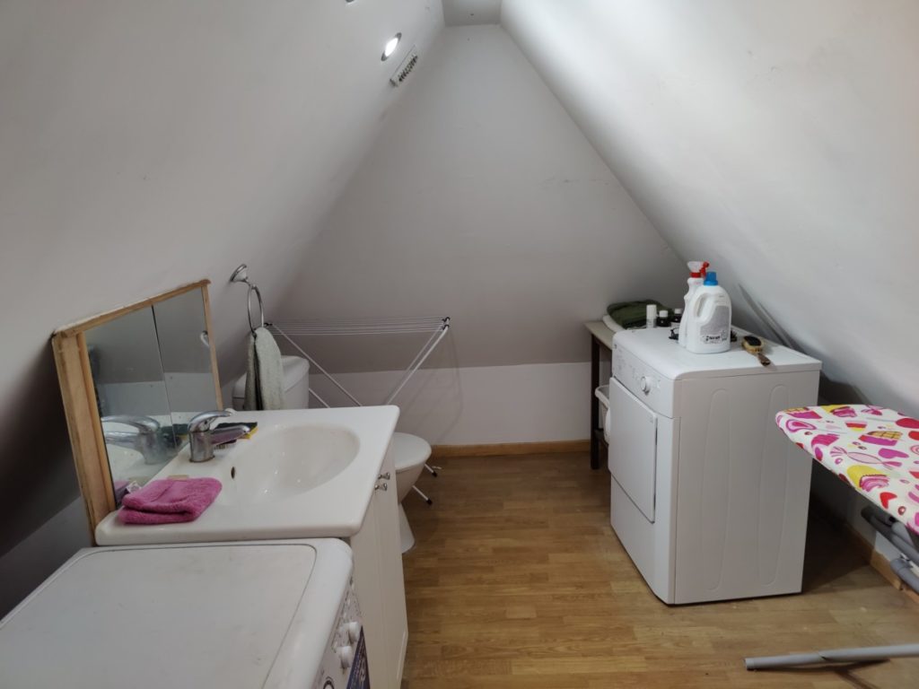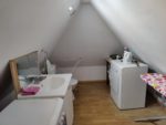 Wood floor, window. Room with basin & WC & plumbing for washing machine.
