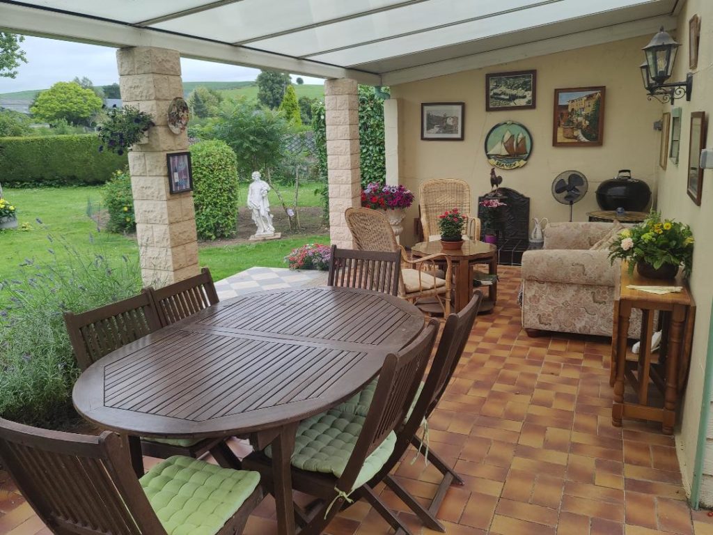 Renovated Fermette set in a quiet lane in a village a few minutes drive from the town of Hesdin. Mains drainage & double glazed throughout. Set over 1100m2 with large courtyard garden to front & grassed gardens to rear. Detached garage/workshop. Comprising: lounge with log burner, kitchen, dining room, 3 bedrooms, bathroom, veranda, garage, outbuildings & garden.