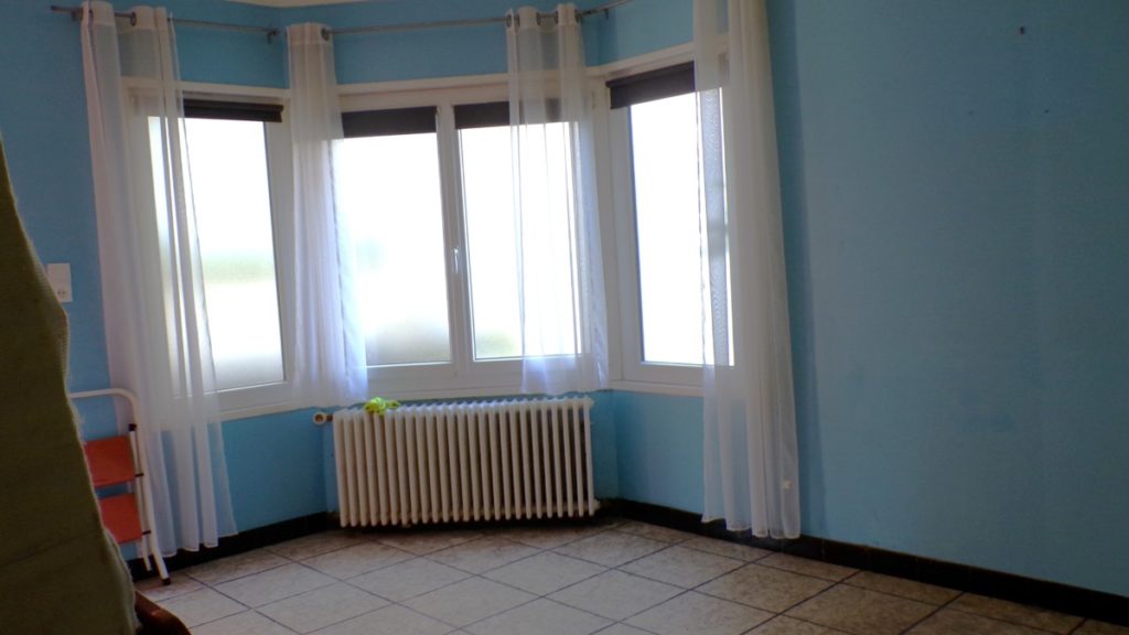 Tiled floor, windows, radiators, fitted cupboards, fireplace.