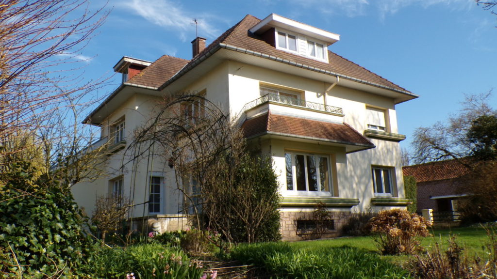 Attractive property with separate apartment set over 1000m2 of grassed gardens & with river frontage. In good general condition with double (except kitchen) & oil central heating. Set in centre of the town of Auxi-Le-chateau. Comprising: Hall, kitchen, utility room, lounge/dining room, 6 bedrooms, dressing room, bathroom, study, basement with five rooms, double garage, apartment, gardens.
