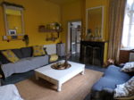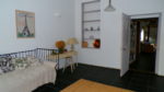 Sol carrelé, fenêtres, porte donnant sur le jardin, placards, radiateur.